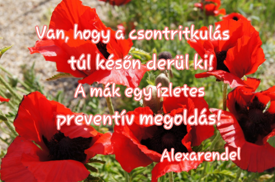Gyuri bácsi javaslata: 1 kanálnyi mák minden nap, 12 hónapig; csak a 6 hónaptól kezdődik a kalcium visszapótlása a csontokba.