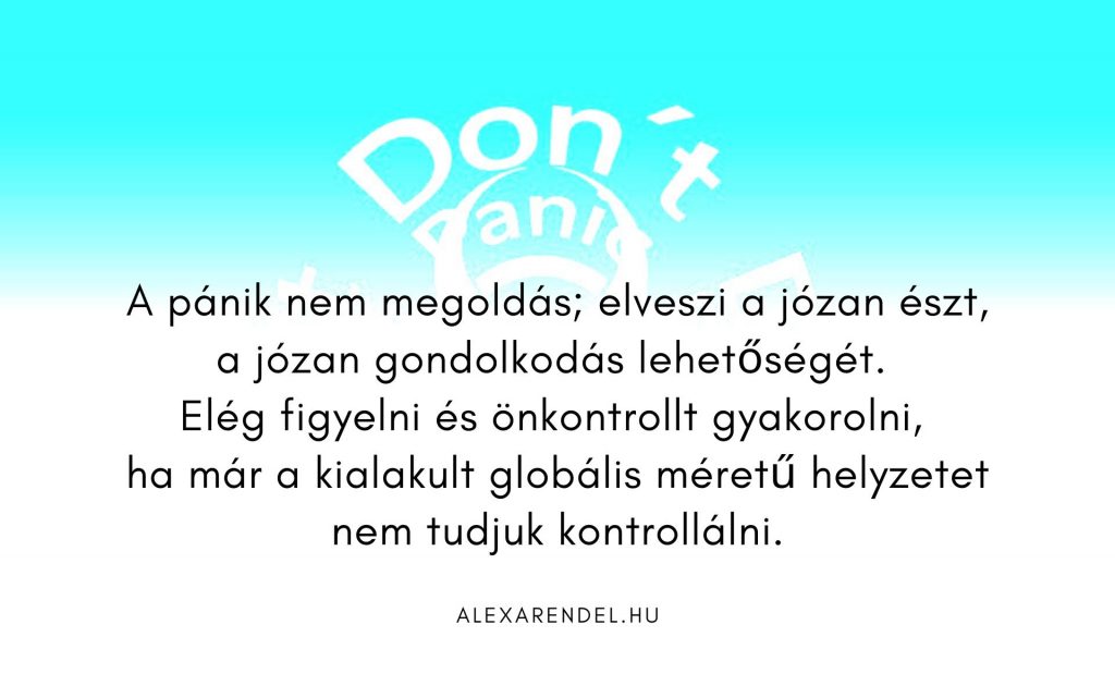 A pánik nem megoldás; elveszi a józan észt, a józan gondolkodás lehetőségét.